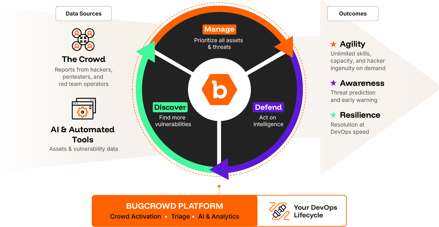 We’ve all seen it: Traditional cybersecurity tools struggle to keep pace with evolving threats. The Bugcrowd Platform helps organizations overcome common limitations like talent shortages, alert fatigue from noisy tools, and undetected vulnerabilities. Its powerful fusion of human expertise, AI, and automation allows you to augment your security team on demand, find and prioritize emerging threats, and continuously strengthen your security posture.