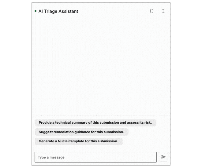 A conversational AI agent built directly into the Bugcrowd Platform. Bugcrowd’s AI Triage Assistant accelerates triage, enriches findings with deeper context, and helps analysts understand not just what a vulnerability is, but what it means for their organization.