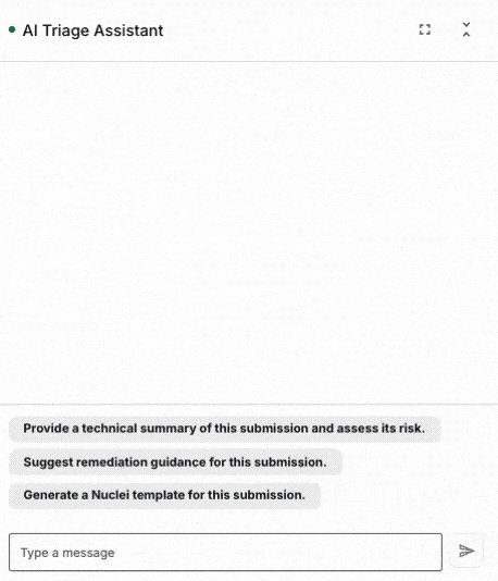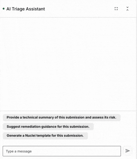 Triage Assistant acts as your technical translator. Instead of spending hours summarizing submissions, the Assistant digests raw vulnerability data and instantly outputs clear technical summaries, severity assessments, and remediation steps. It bridges the gap between hackers and developers, ensuring you spend less time explaining a bug and more time fixing it.