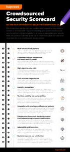 For organizations considering a crowdsourced security approach, it can be difficult to know where to start. The industry is full of buzzwords and inflated statistics, leaving many feeling unsure what criteria to use when evaluating vendors. To help with this, we’ve created this simple scorecard, which highlights 10 items to prioritize. Whether you’re using this scorecard at the beginning stages of a vendor evaluation exercise or you already have a solution and you want to see how it stacks up, we hope it helps you feel empowered in your decision.