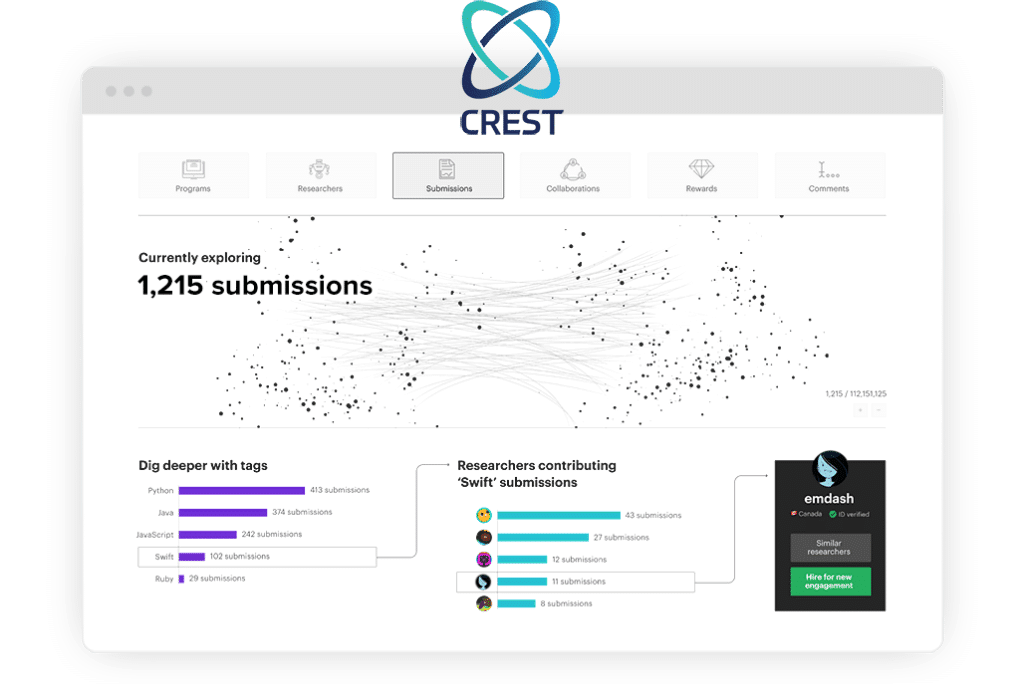 Other pen test providers rely on a cookie-cutter approach regardless of your specific assets, environment, or needs–virtually guaranteeing low-impact results. Instead, we use the power of CrowdMatchTM AI in our platform to curate qualified, motivated pentester teams for your precise requirements, boosting high-quality results over other methods.