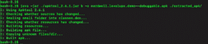 We then use the apktool.jar tool to rebuild our debuggable APK using the command, which creates a new APK called nerdwell.levelupx.demo–debuggable.apk from the contents of the “extracted_apk” folder.