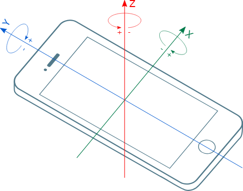 A gyroscope measures angular velocity (how quickly something rotates over time) around three relative axes: