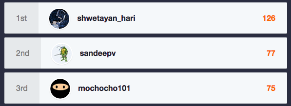 1. shwetayan_hari – 126 points – $2,500 bonus