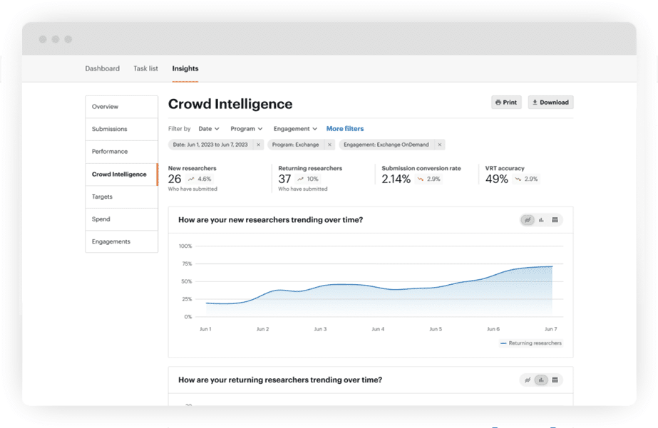 CrowdMatch encodes our battle-tested approach for evaluating historical data while simultaneously ingesting and adapting our understanding of hacker preferences and performance in real time. That continuous ingestion process maximizes our ability to activate the best hackers for your program’s unique needs over time, based on your evolving success criteria and requirements.