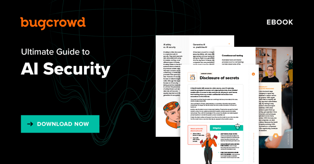 The first step to AI security is to identify the current risks. In our guide, we cover the main vulnerabilities, at-risk systems, and potential mitigations. With that knowledge, you’ll be able to set up some initial defenses for your AI systems. The next step is to then consider long-term, robust defenses, such as red teaming and crowdsourced security. To help you get started implementing AI security, consider using the Bugcrowd platform to find and work with the right expert hackers for your company, through VDPs, bug bounties, and pen testing as a service.