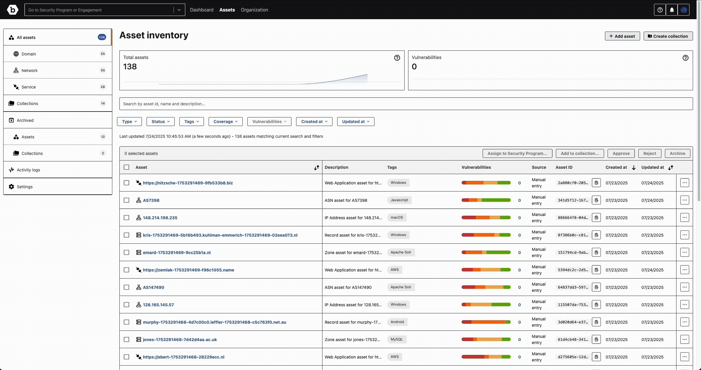 It unifies the entire asset life cycle—from discovery and enrichment to action—within a single experience across the Bugcrowd Platform. With Asset View, you can do the following: