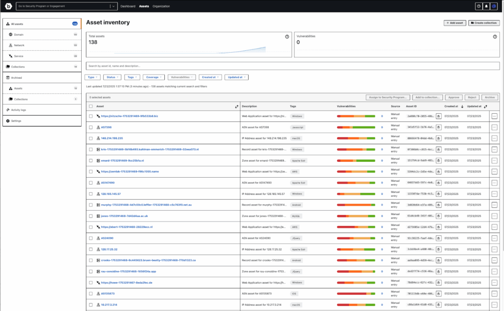 Traditional asset management tools were built for static infrastructure and internal systems. Today’s threats demand more. By unifying asset intelligence and offensive security into one platform, Bugcrowd empowers organizations to shift from passive monitoring to continuous defense—at speed and scale.
