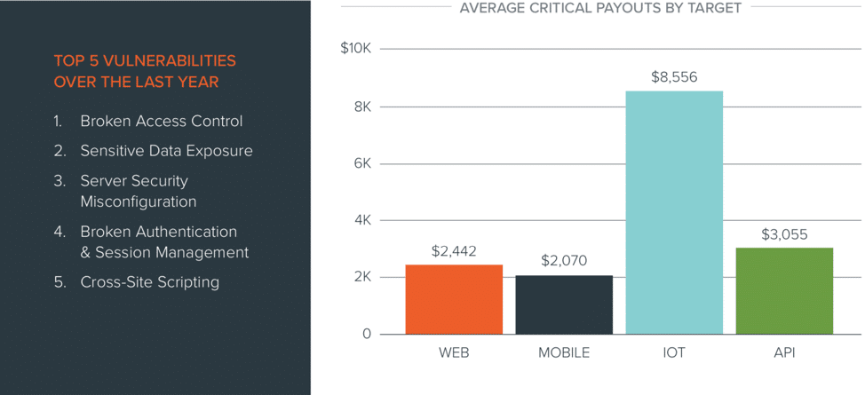 One thing that hasn’t changed in our latest report is the prevalence of web vulnerabilities, which are still on the rise. It’s no surprise since the web is still the largest attack surface out there, and accounts for 90% of all submissions through our platform. While this trend will continue over the next year, these vulnerabilities might come in different flavors as widespread migration to the cloud and connected devices continue to surge.